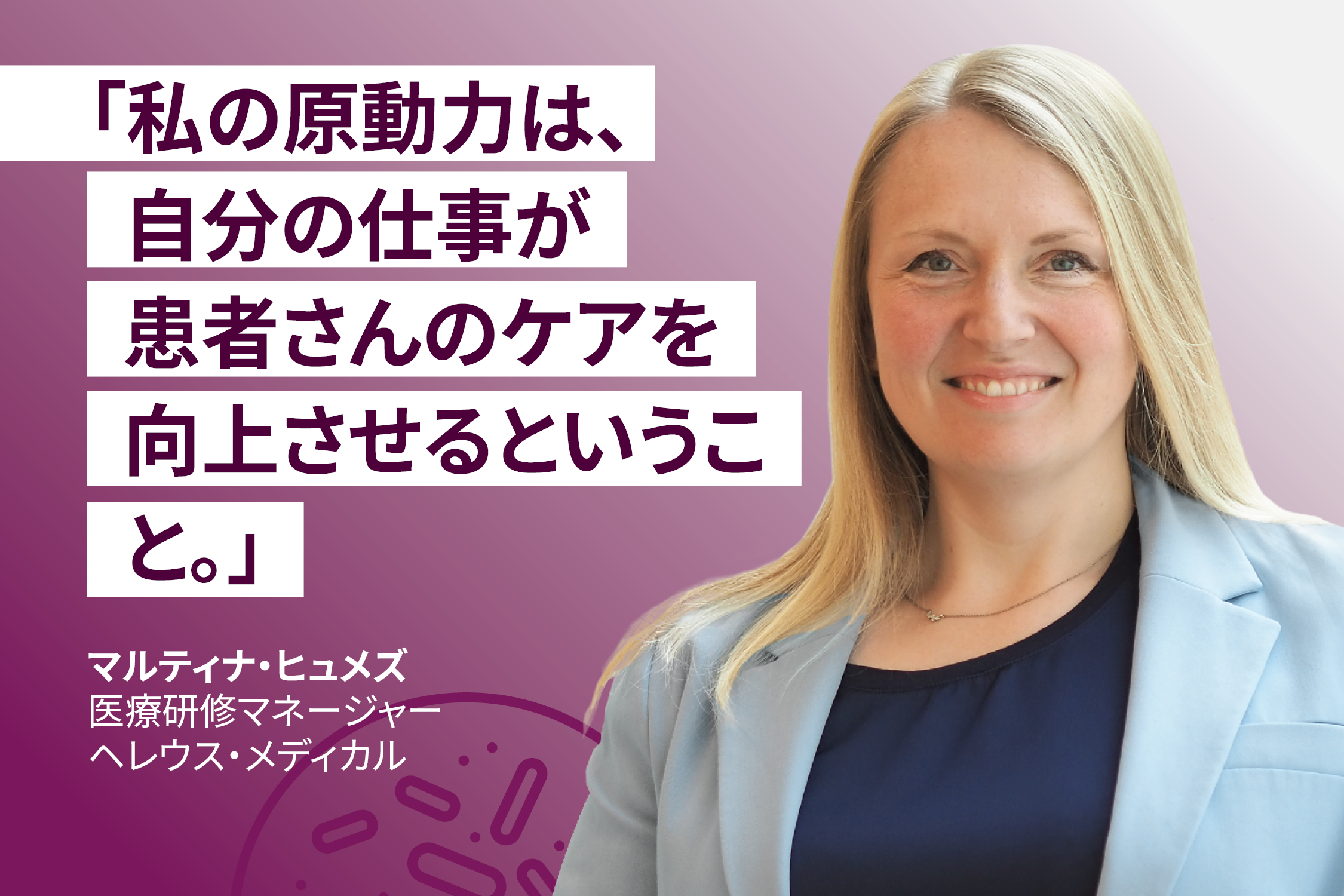 マルティナ・ヒュメズはヘレウス・メディカルのメディカル・トレーニング・マネージャーである。このヘレウス社の事業会社は、外科整形外科と外傷外科用の骨セメントと生体材料の分野におけるリーダーである。「最新の外科技術や固定技術のおかげで、人工関節などの人工内膜は、より長く体内に留まることができるようになりました」とヒュメズは説明する。「抗生物質入りの骨セメントを使うことで、感染のリスクを減らすことができます」。ヒュメズは医師や手術室のスタッフに、科学的原理から様々な製品の仕様に至るまで、この文脈で重要なことを教えている。彼女は微生物学の博士号も取得していて、彼女の博士論文は、彼女の専門的な仕事と密接に関連している。